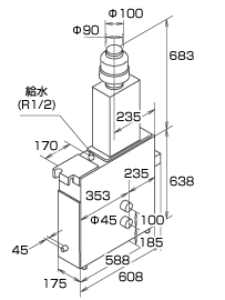 ※寸法図(単位:mm)は右タイプです。左パイプの場合には循環パイプが